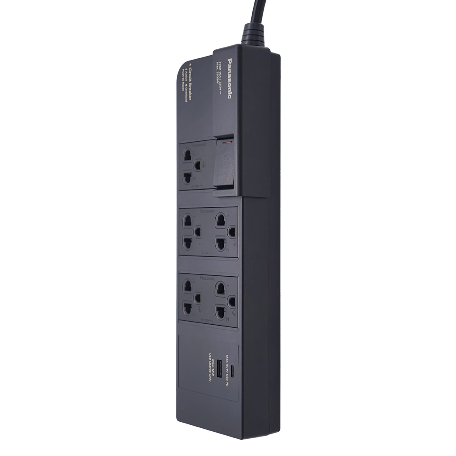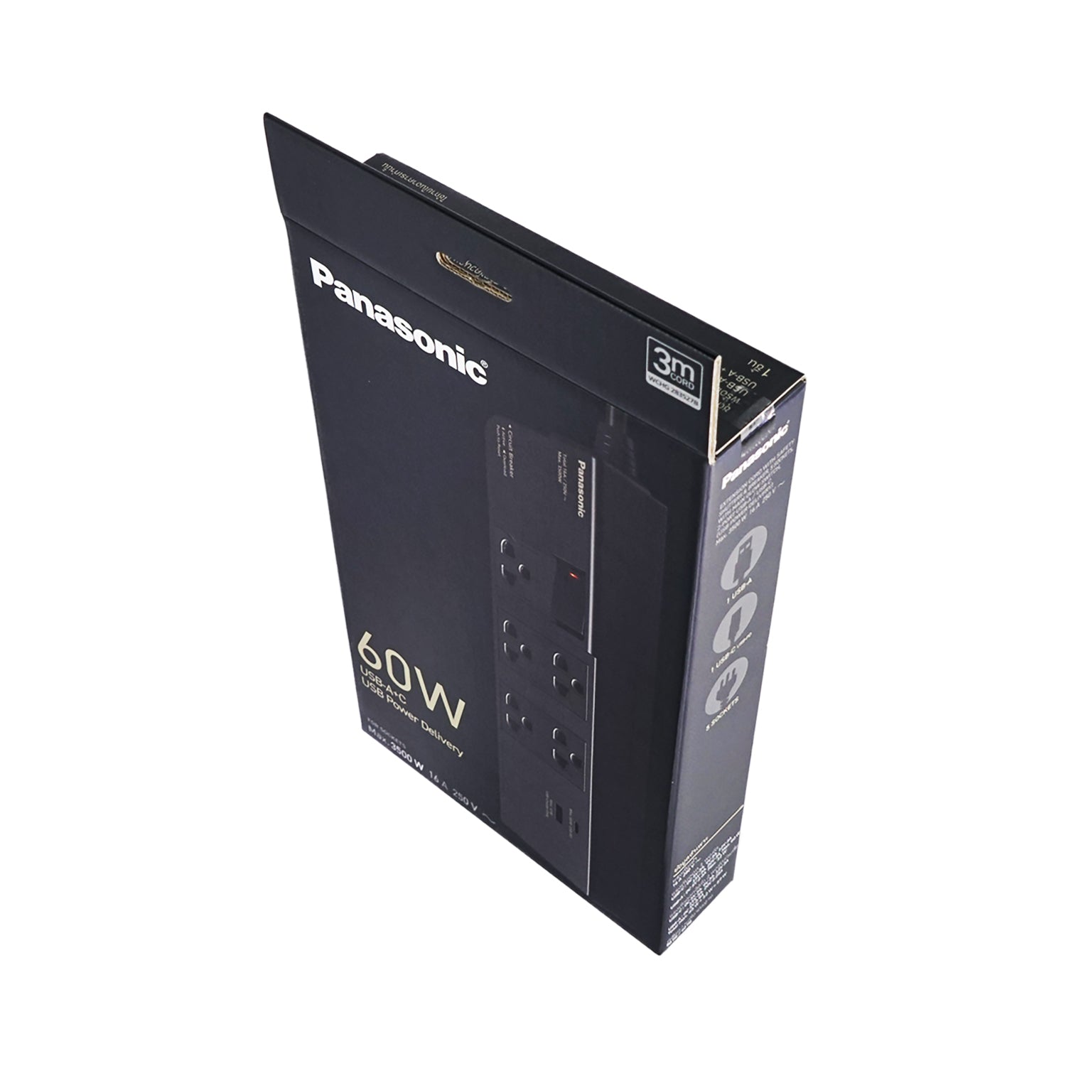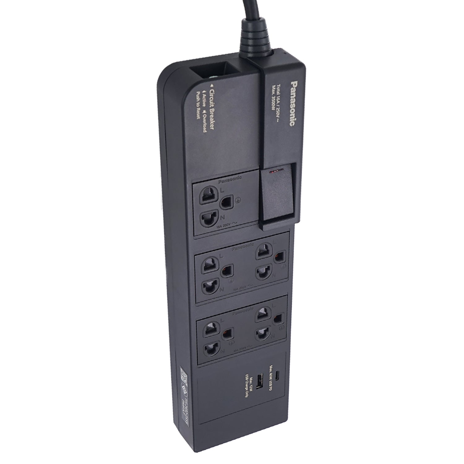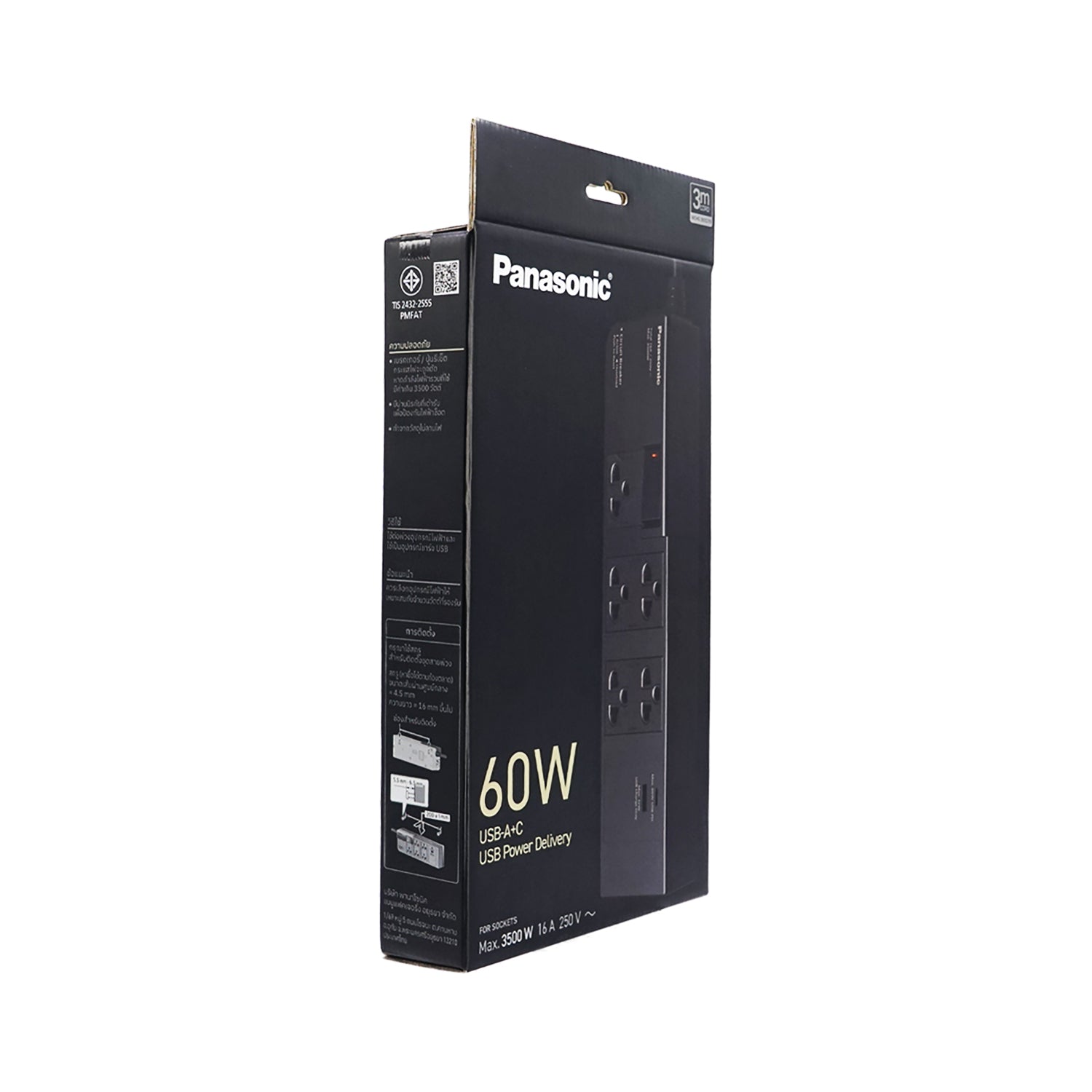 Panasonic WCHG283527B ปลั๊กพ่วงพานาโซนิค 16A 3500W 1 สวิตช์คุมรวม 5 เต้ารับ พร้อม USB-A+USB (PD) 60W