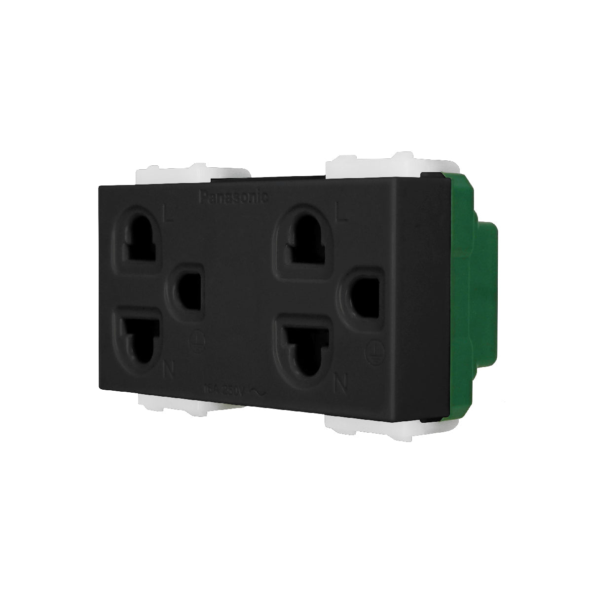 เต้ารับคู่ เสียบขากลมแบน มีกราวด์ ( สีดำ )