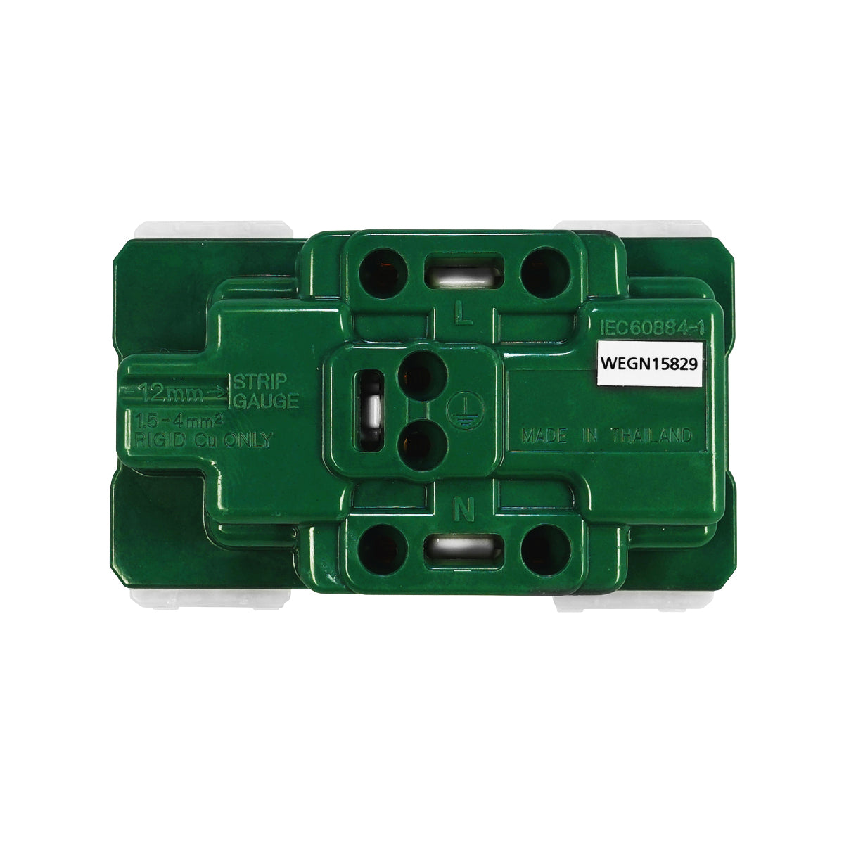 WEGN15829 เต้ารับคู่ เสียบขากลมแบน มีกราวด์ และม่านนิรภัย